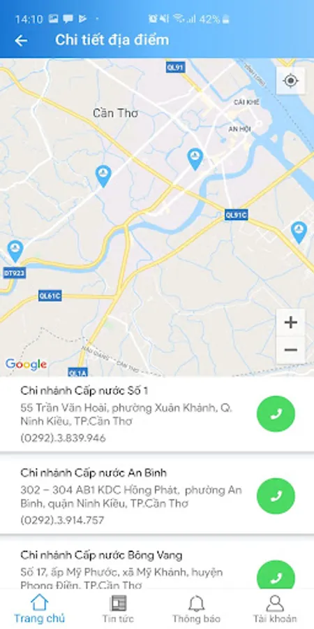 Tra cứu các địa điểm giao dịch trả tiền nước.