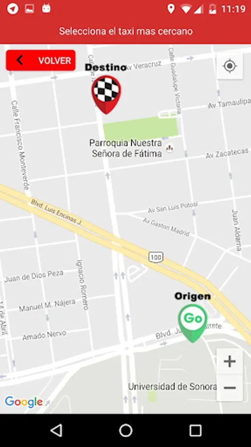 Application with which you can quote and request taxi service using a map which indicate the start and end of the trip.