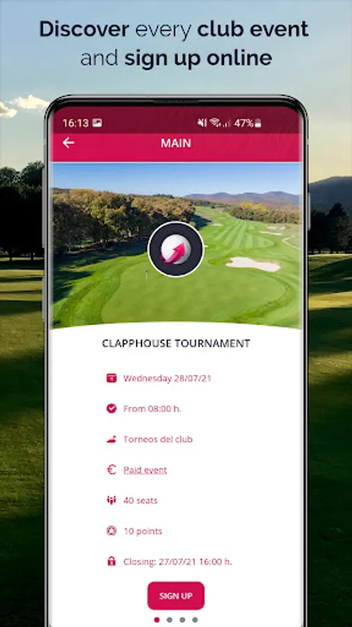 Clapphouse will also allow you to discover club events in a more enjoyable way. For example, you can check all the information of the event in a very visual profile that will surprise you, and register online and know your tee time and classification in a personalized way as soon as they are available.