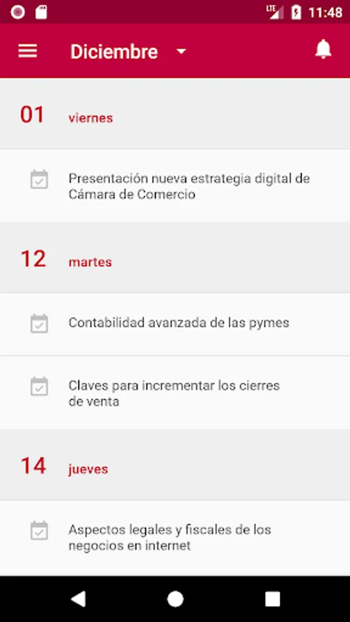 - Diary. Check out the events of the Chamber by date and add them to the calendar of your mobile phone.