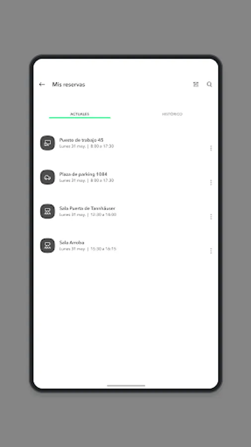 Any resource that can be reserved can be included in the space reservation app, facilitating the management of common spaces and shared use among employees. In addition, the app's configuration allows adding features to the resources, which will make it easier for the user to filter them.