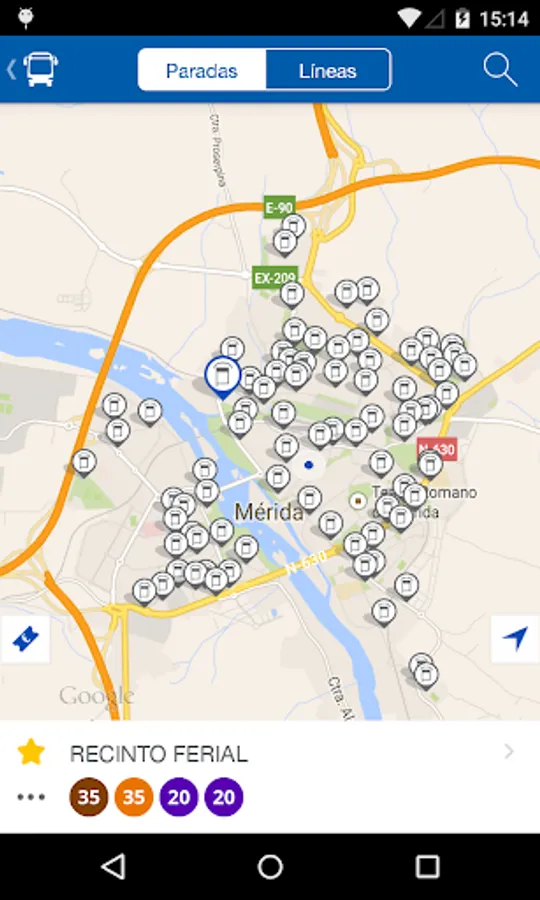 POI: Points of Interest Merida, connected with Google Places to display tourist information or services; You can be displayed along with the map of stops and bus lines.