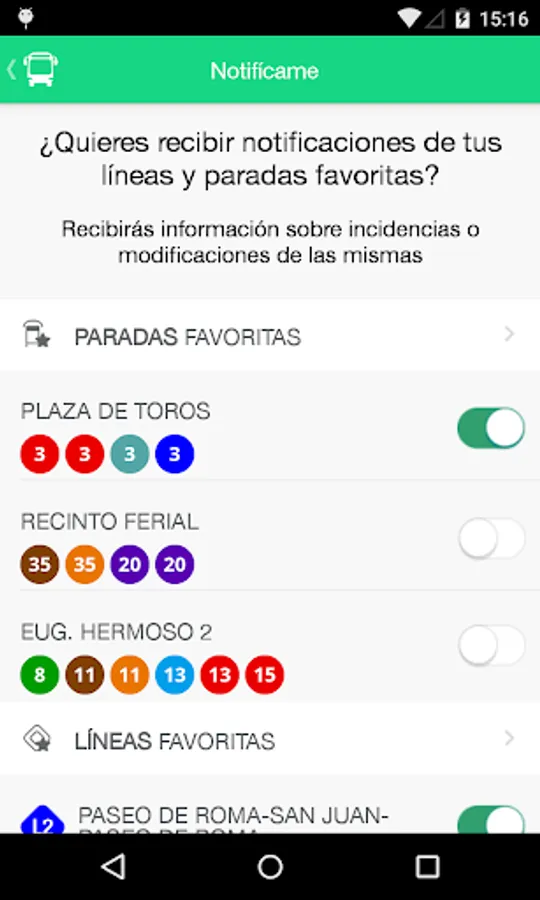 Watch: Enable notifications general service, such as schedule changes or incidents, for each of the stops and lines marked as favorites.