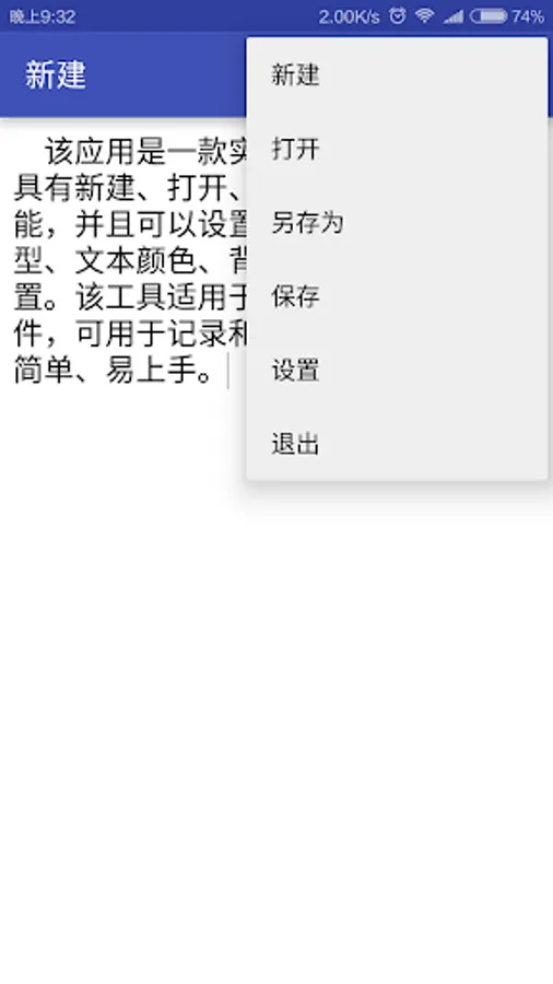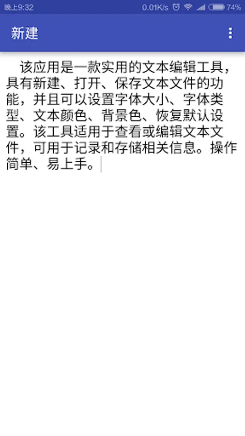 该应用是一款实用的文本编辑工具,具有新建、打开、保存文本文件的功能,并且可以设置字体大小、字体类型、文本颜色、背景色、恢复默认设置。该工具适用于查看或编辑文本文件,可用于记录和存储相关信息。操作简单、易上手。
