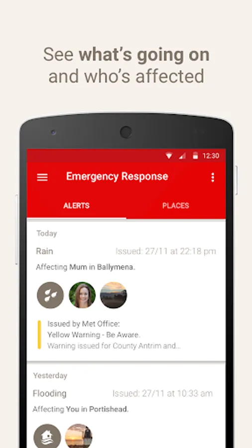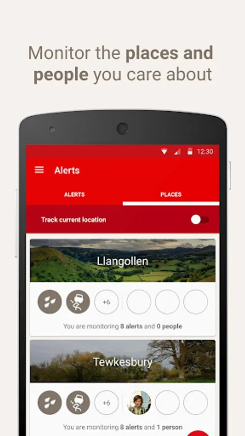 Get tailored push notifications delivered straight to your pocket. Add the places and people you care about to get severe weather warnings from the Met Office, flood warnings from the Environment Agency (England only), UK Threat Level updates, and alerts from the British Red Cross.