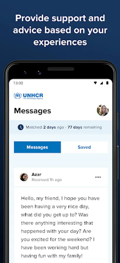 Connecting Worlds uses secure messaging to facilitate authentic, safe conversations between supporters and refugees. Supporters using the App contribute to UNHCR’s work by providing refugee students with scholarships for higher education - making it possible for them to pursue their education and transform not only their own lives, but of the communities around them.