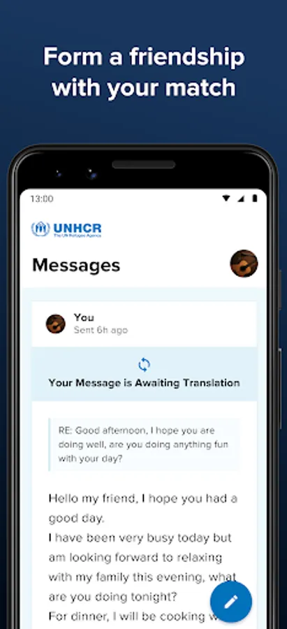 Connecting Worlds uses secure messaging to facilitate authentic, safe conversations between supporters and refugees. Supporters using the App contribute to UNHCR’s work to provide vulnerable refugees with much needed cash assistance that allows refugees to make critical choices about their immediate needs, restoring a sense of dignity.
