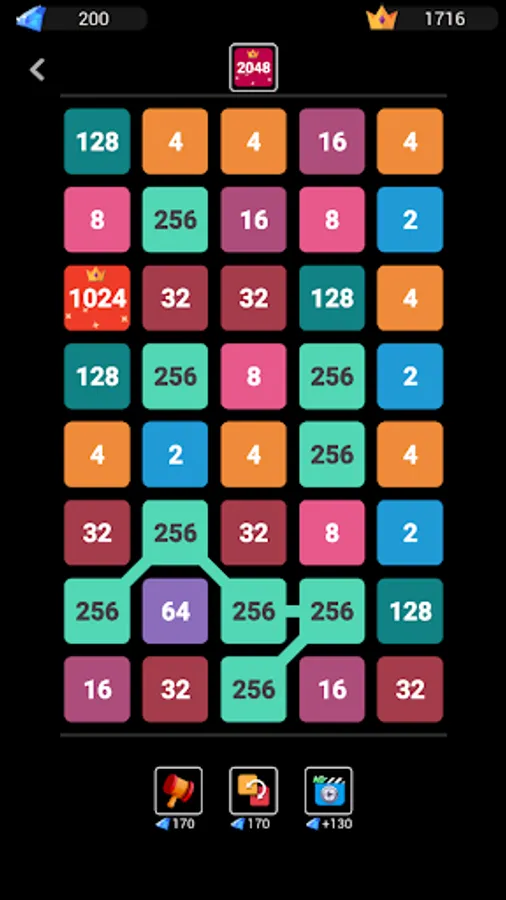 🔢 Slide and connect the same number blocks in any of the eight directions to merge them.