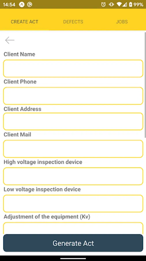APP allows you to enter all the necessary information, such as the object, the materials used, its area, the customer and the inspector.