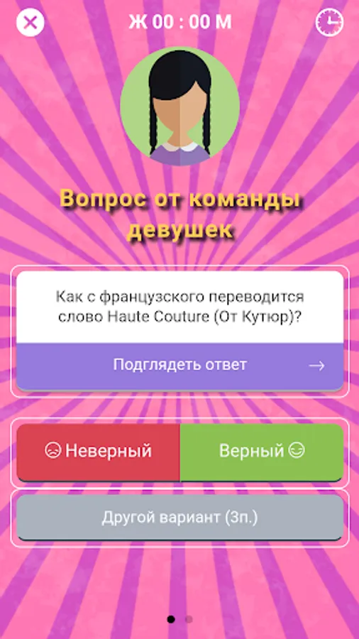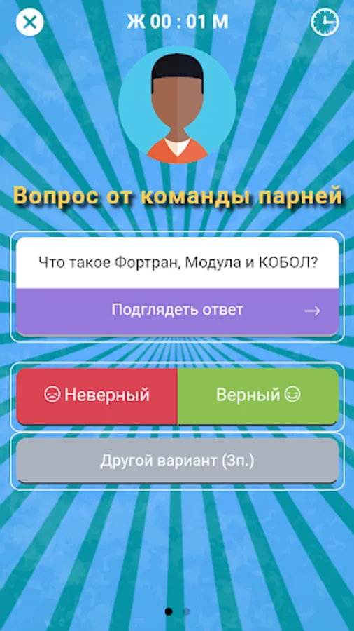 Each round, the question is asked, either from the command team of men women, or vice versa. At the beginning of the game the team agree to use the timer, or to give unlimited time to answer. The timer is started in the upper right corner of the screen issue - click on the clock icon, and the time has gone!