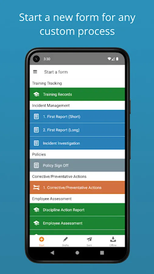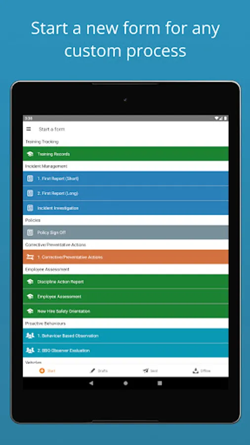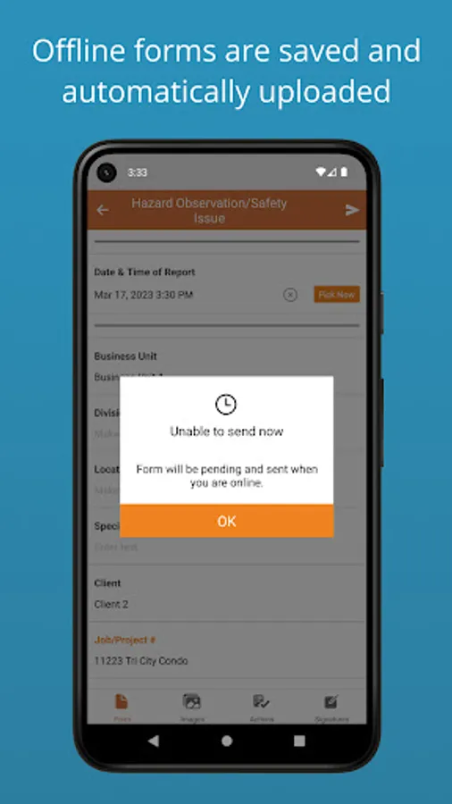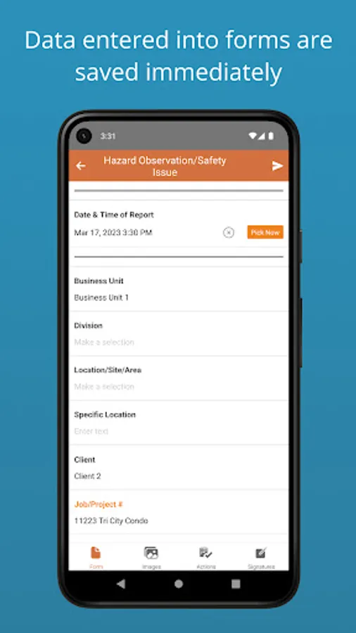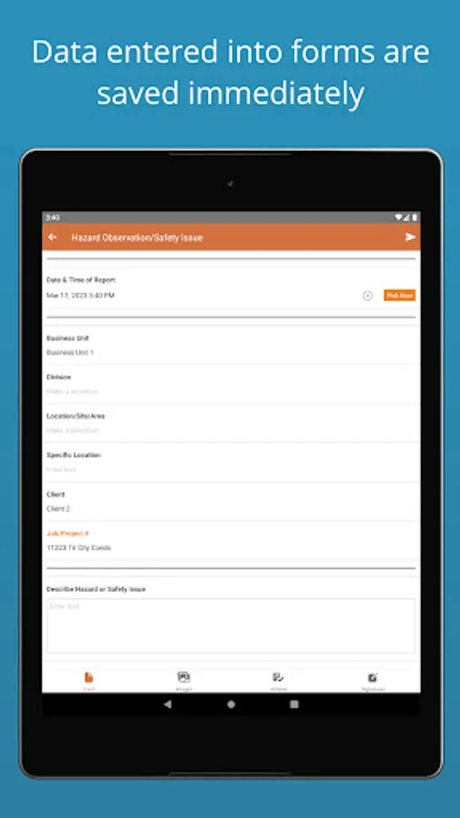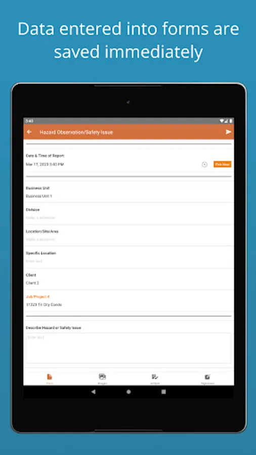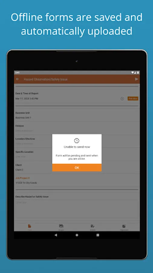 When completing a form, the Cube app saves data automatically so users will never lose data. This functionality is ideal for extensive forms, such as incident investigations or worksite inspections, where users have multiple instances of data entry interaction with the app.