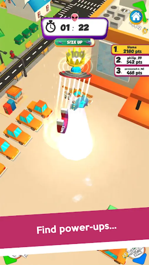 - Get all the magnet power-ups on the map to become the biggest UFO!