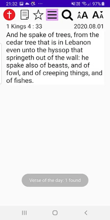 Simple, compact but many good features in the Bible. Easy to use for your King James Bible. It is also sending the verse of the day automatically.