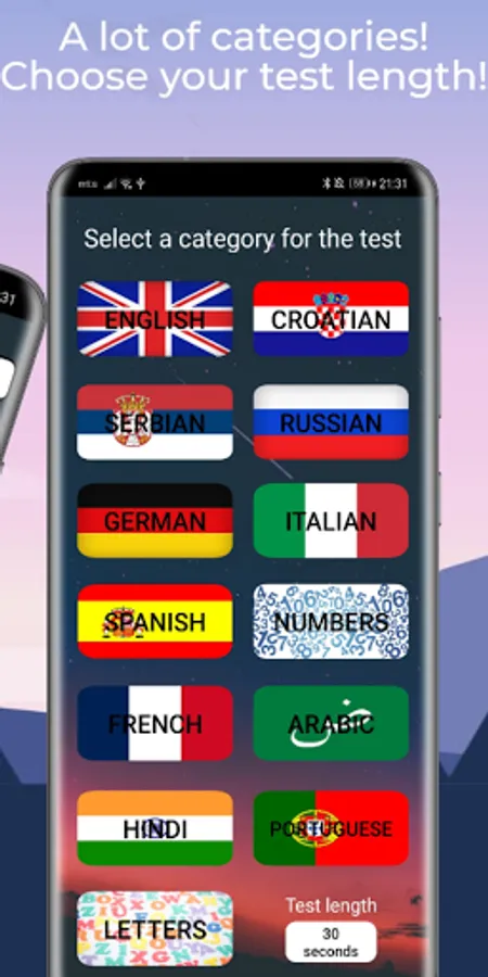◾ Choose test length (30 secondes, 1 minute, 2 minutes, 5 minutes or 10 minutes)