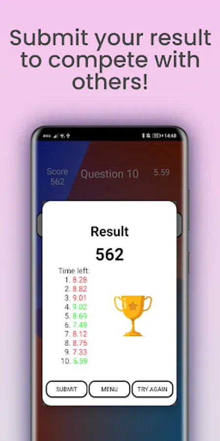 Improve your knowledge even when you are alone, submit the result and compete with other users.