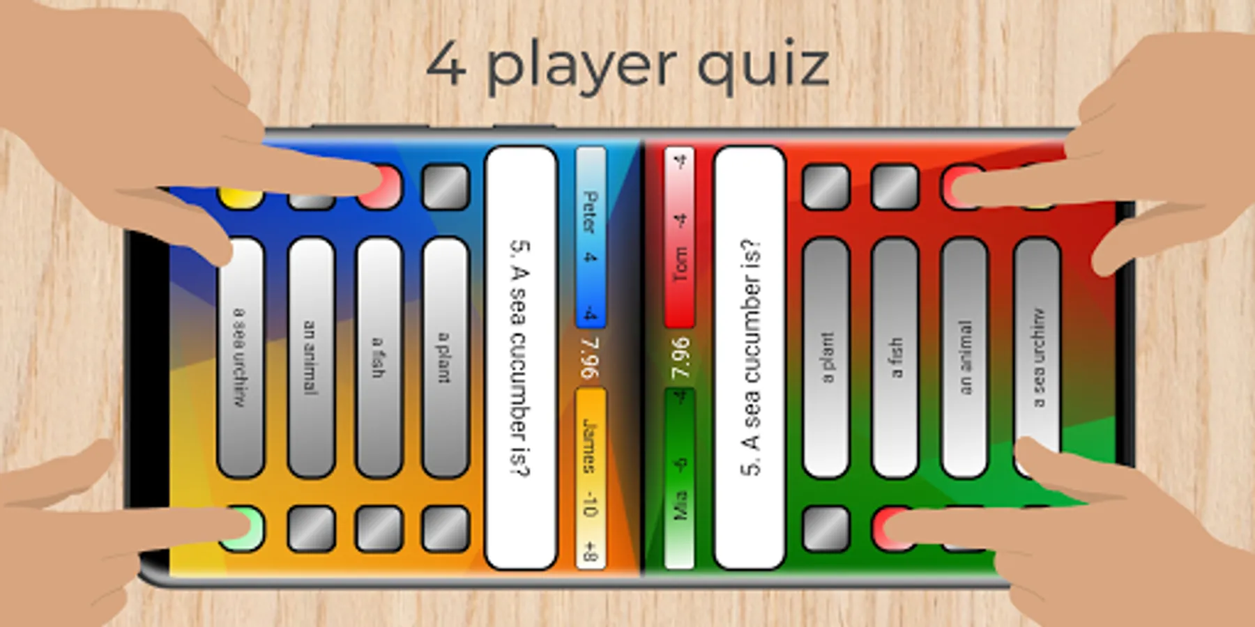 Enjoy duel quiz in split screen mode for 3 and 4 players!