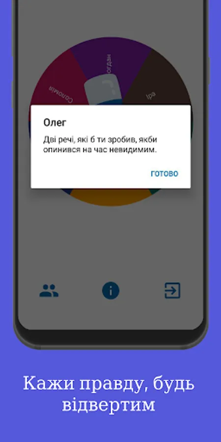 The rules are simple! One player asks the other: - "is it true?" If the opponent chooses the "truth", they are asked questions that should be answered as honestly as possible. If he chooses "action", he is given a task to accomplish.