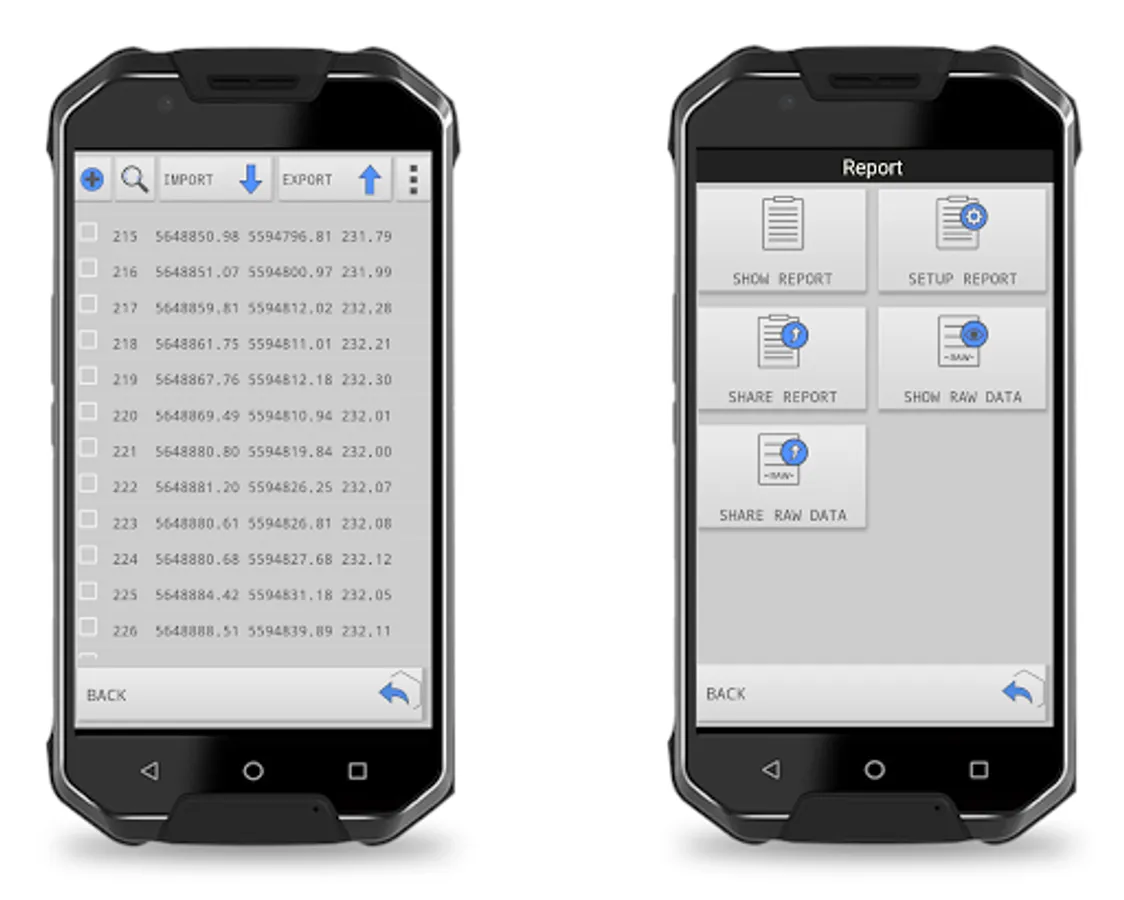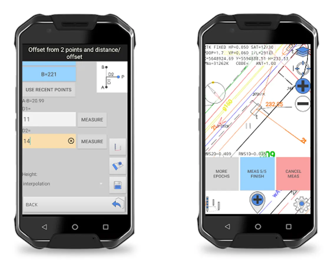 • use your laser distance meter and echo sounder – our field survey app supports these devices via Bluetooth