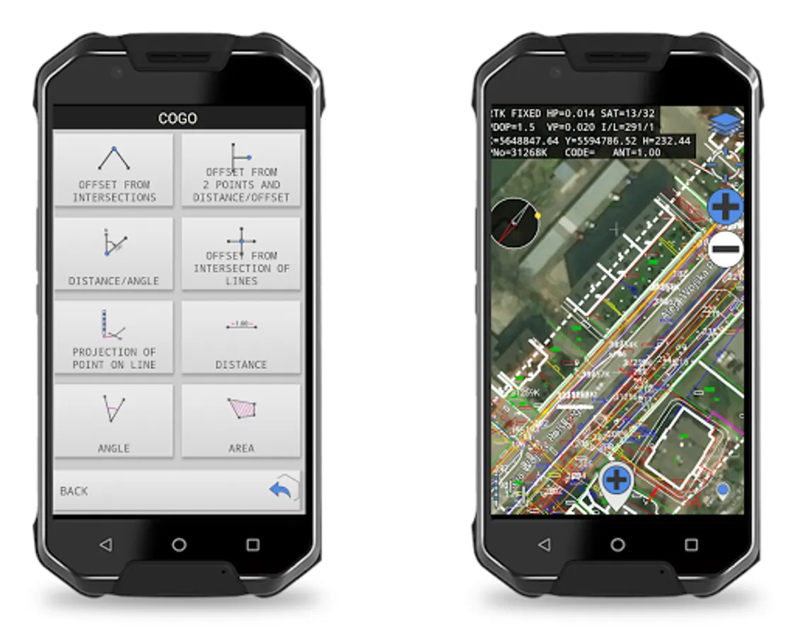 • stake out almost everything – the app gives you many advanced options of staking from a vector map