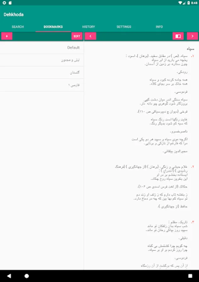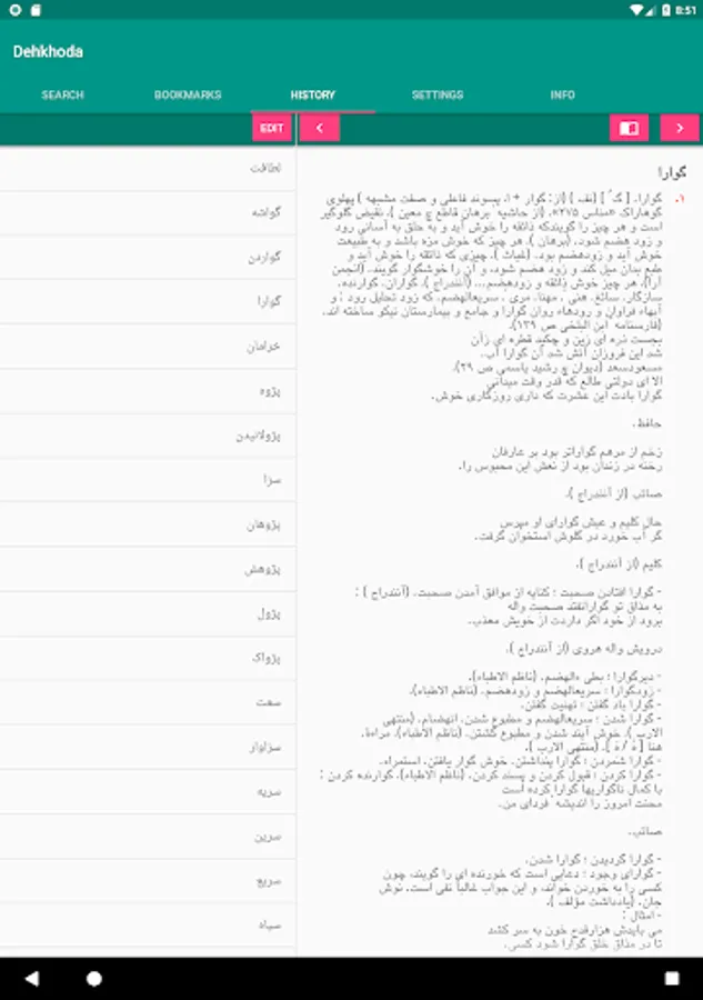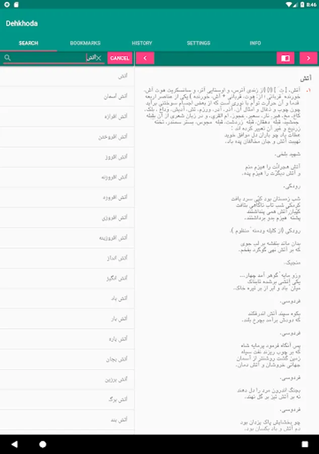 این برنامه شامل کلیه لغات لغتنامه دهخدا و شامل 343,458 مدخل میباشد.