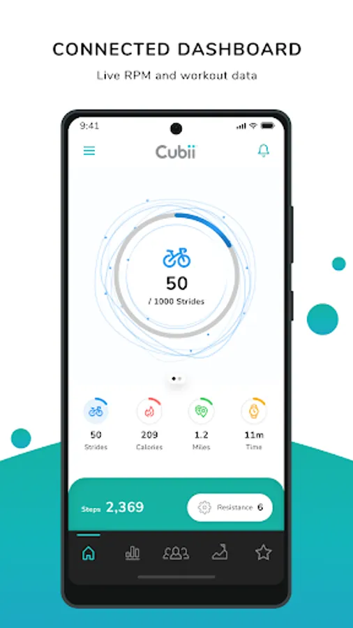 Seamlessly connect with Cubii, the world's first smart under-desk elliptical trainer to get a real-time update of your desk workout via Bluetooth — including strides, distance, calories burned, and more.