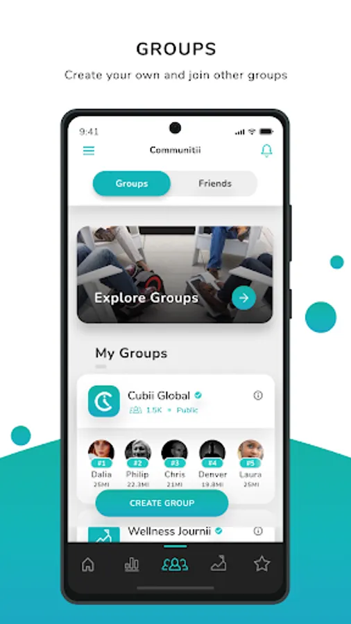 COMPETE WITH FRIENDS: Create groups, and enlist friends, family and coworkers to help you reach your goals by sharing stats and competing within your own private groups as well as public groups including city and industry.