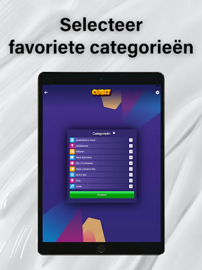 With more than 1500 questions in 9 different categories, Cubit guarantees many evenings of fun. In addition, new questions are added regularly! You even receive new questions every month via the questions subscription.