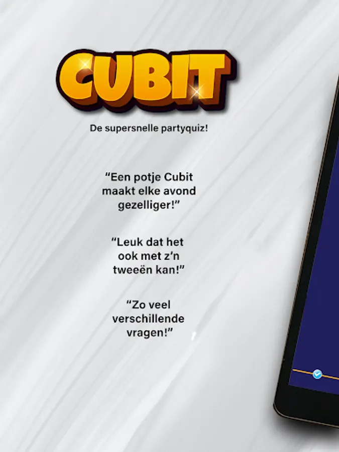 Cubit can be played solo, it is best with two people, but can also be played with a large group. With Cubit, every night turns into a party. Whether you're alone, together on the couch, with friends in the pub or with family on a weekend away.