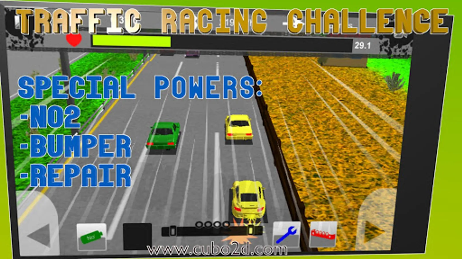 You can buy and customize different cars. Also use nitro to increase your speed, repair the car while driving and equip a bumper reinforced to minimize damage.