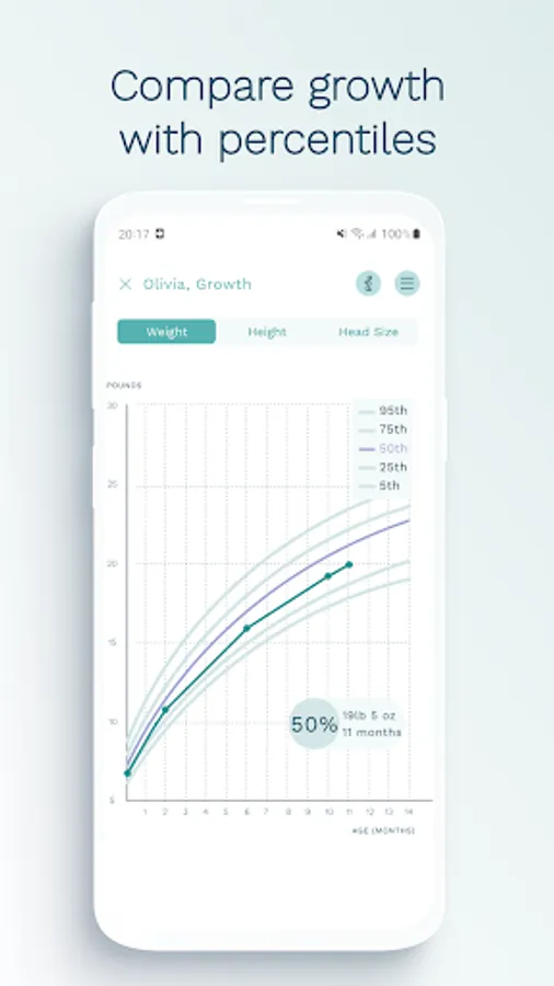 4- Growth & percentiles: See your baby growth and compare with other similar age babies using percentile rates driven by World Health Organization's guidance.