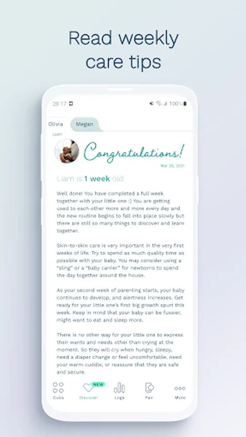 3- Weekly tips: Receive care tips and insights to developmental as your baby grows.