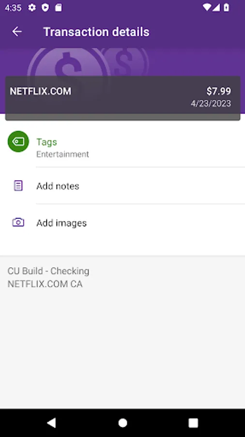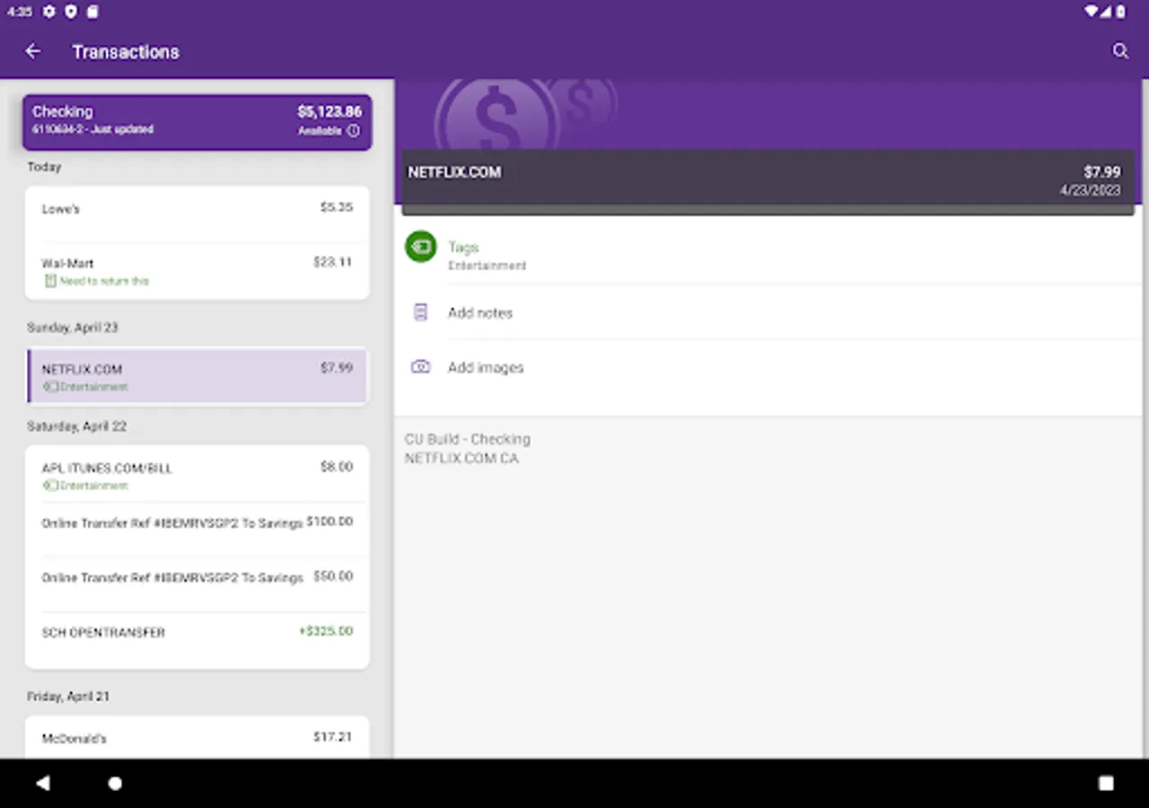 -Keep your transactions organized by allowing you to add tags, notes and photos of receipts and checks.