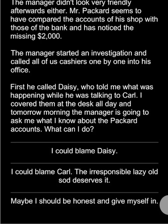 Readers are given different options and choose the best options to save the character's life... although it's not so easy.