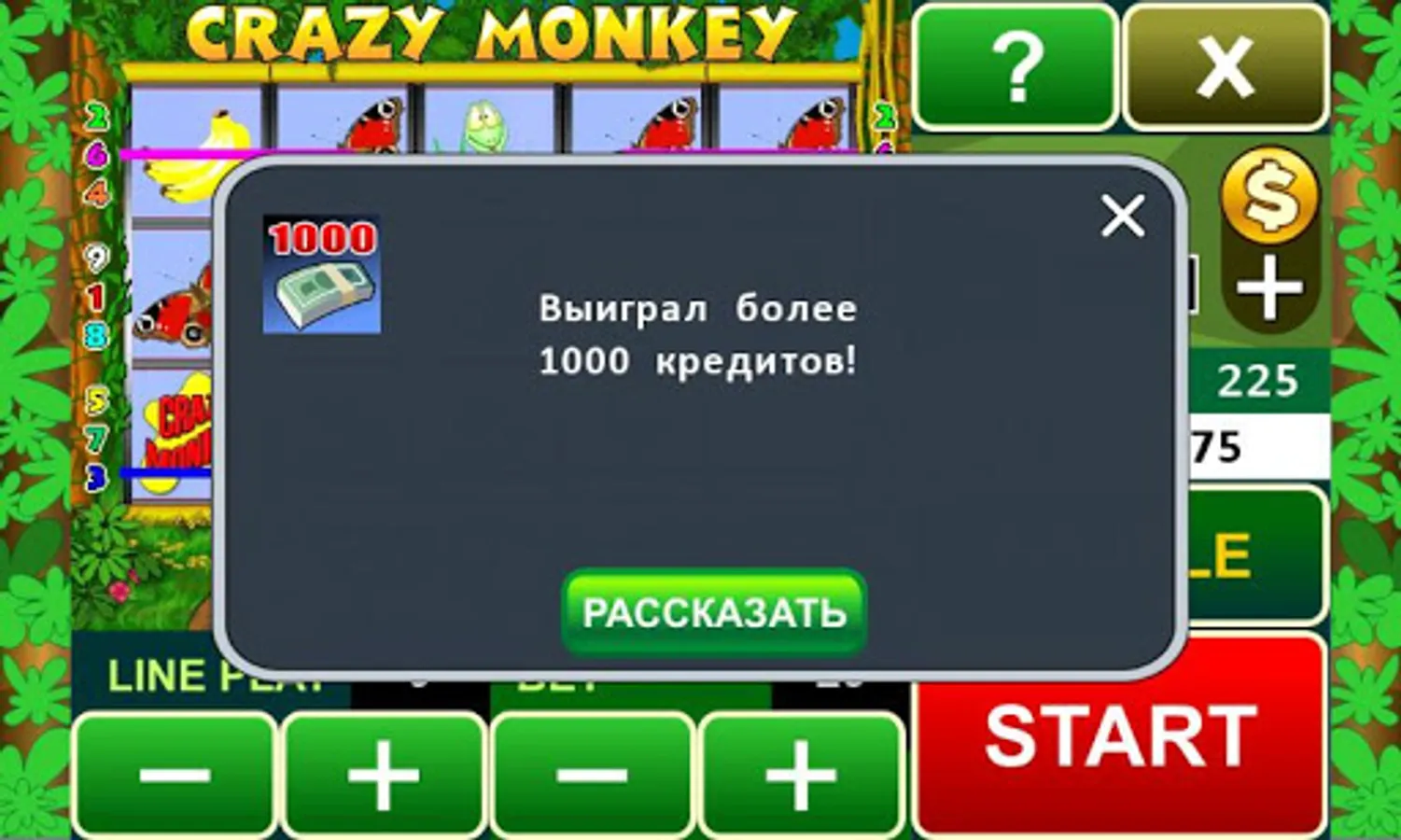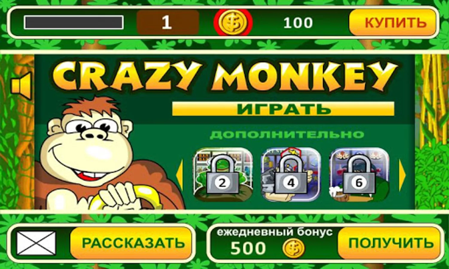 Crazy Monkey slot machine. A slot machine is a slot machine that gives a chance to win an amount many times larger than the bet size. The goal of the game is to collect a winning combination of symbols by spinning the reels. The better the combination, the bigger the win. Have a nice game in the best emulator
