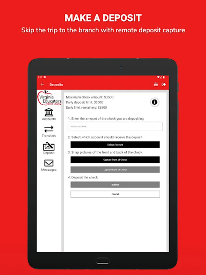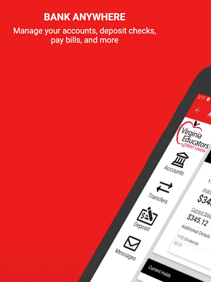 Virginia Educators Credit Union’s mobile banking app that gives you access to your VECU accounts and allows you to check balances, view transaction history, transfer funds, pay bills, and so much more wherever you are!