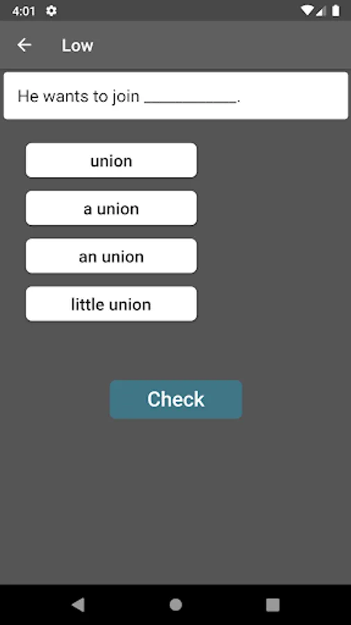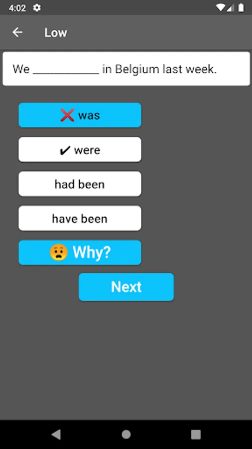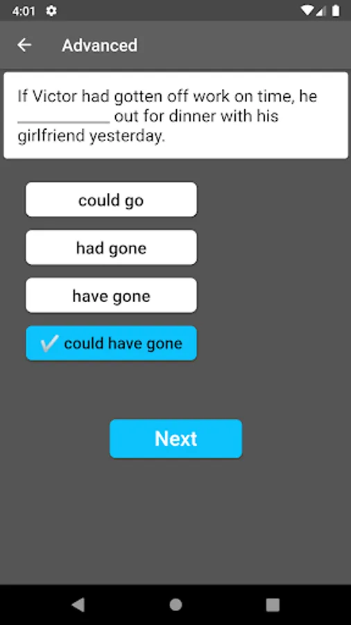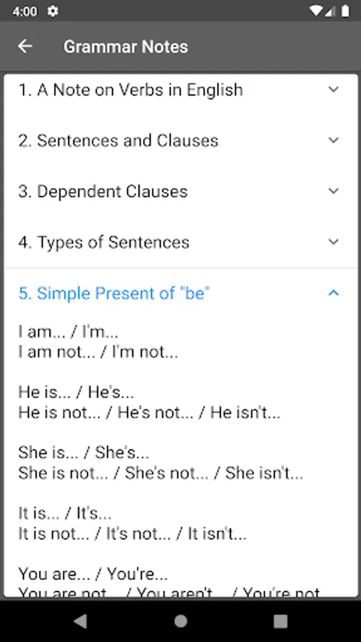 Note: In addition to single sentences, iPad users have paragraph-length items with four grammar completions.