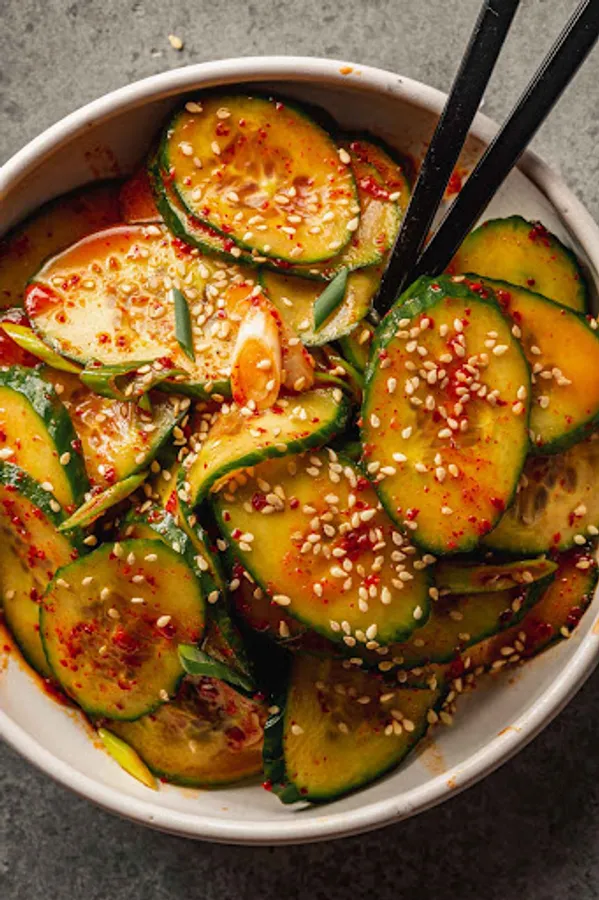 As for how to make cucumber salad, it couldn't be any easier. If you have one, simply slice your cucumbers using a mandoline, toss them with a bit of sugar and salt, then stir in vinegar and onion. A few extra minutes of marination time softens the bite of the onions and helps the tangy seasonings infuse every bite of cucumber.