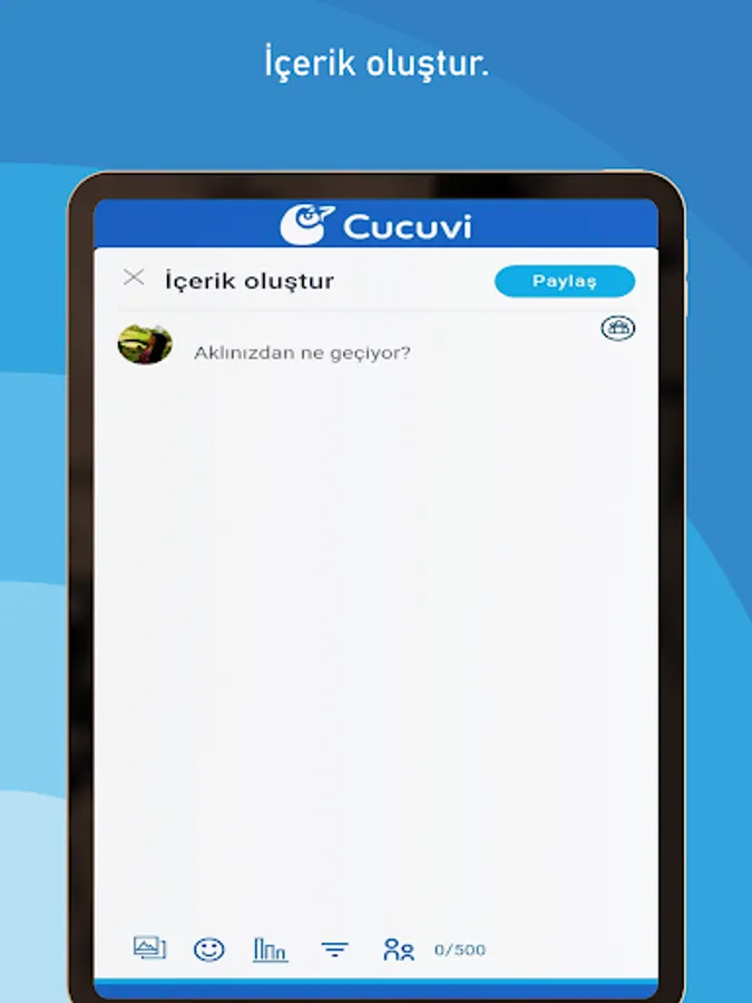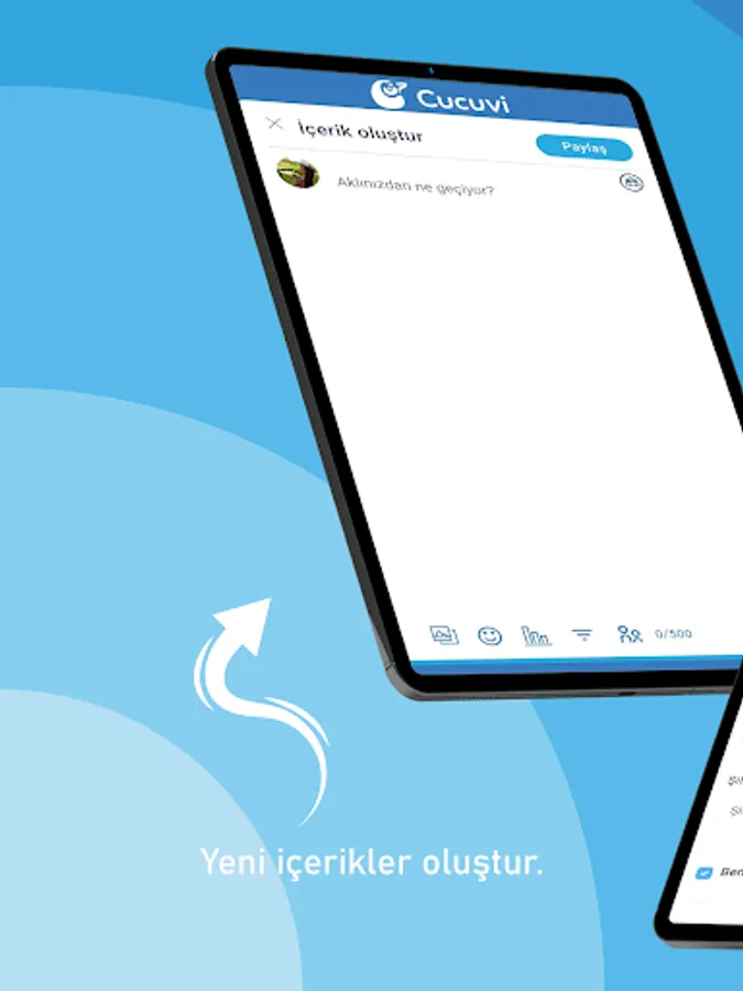 Cucuvi offers a brand new social media experience. It allows you to communicate and interact with people you know. Prepares new follow-up suggestions suitable for your profile features. It offers different sharing alternatives by supporting text, image, video sharing as well as document (pdf, doc, ppt, etc.) and audio recording sharing features.