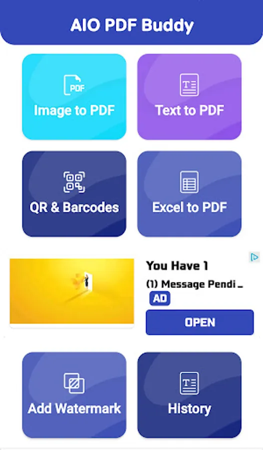 AIO PDF Buddy is your free All In One PDF Editor. There are no limits on file size or the number of documents that can be converted. There is no pay wall to unlock any features. Various file formats are supported (Word, Excel, Image, Text, Doc, Docx, QR code, Bar code and more).