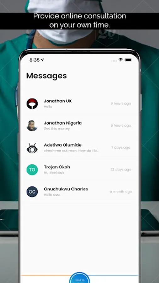 Earn a lot more and reach more people with our unique service offering of in-person medical consultation services. Attend to people near you who require medical attention at little or no cost to you.