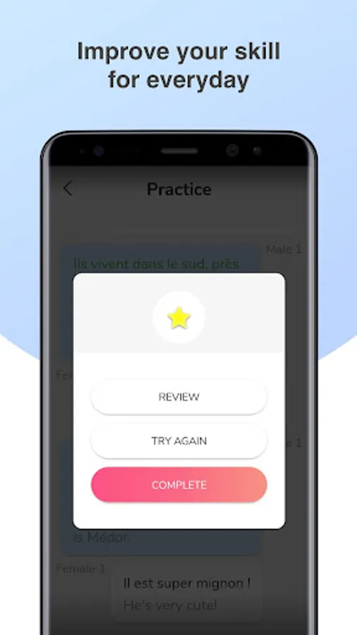 The application helps you immediately improve your communication skill in French (in daily communication, travel, shopping, work, weather ...), support for learning, research, job, travel, study abroad, labor export ...