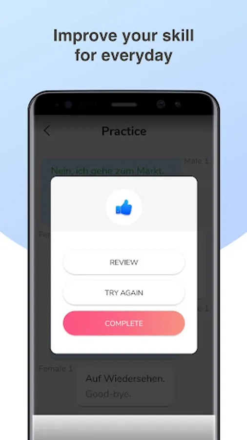 The application helps you immediately improve your communication skill in German (in daily communication, travel, shopping, work, weather ...), support for learning, research, job, travel, study abroad, labor export ...