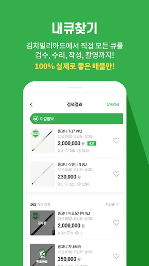 Certified used queue for 10 million billiard players directly operated by Kimchi Billiard, which is recognized worldwide !!