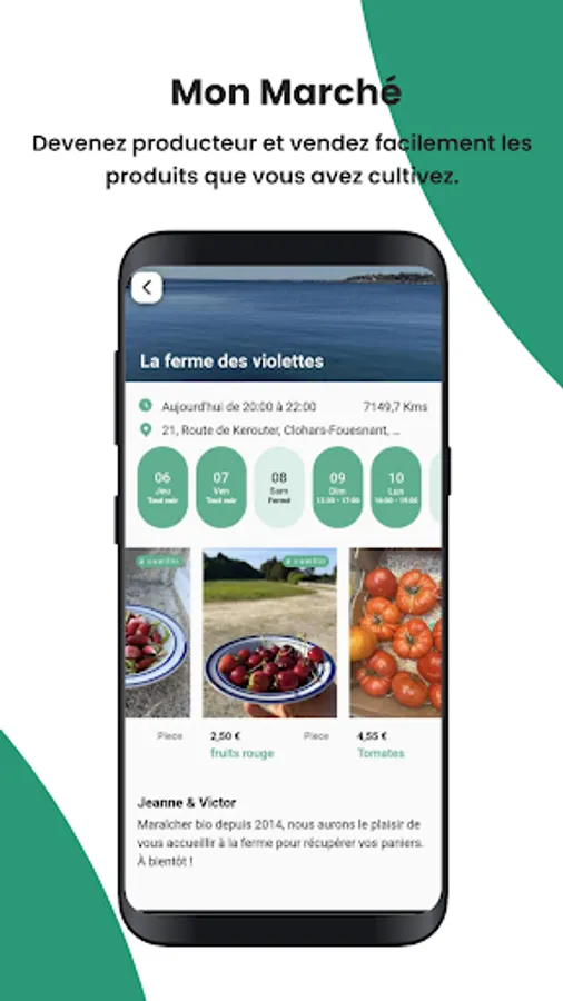 You will find on Cueillette all the food products of the producers of the region. Fruits, vegetables, meats, cheeses, drinks, seafood and many more such as honey, herbal teas, etc.