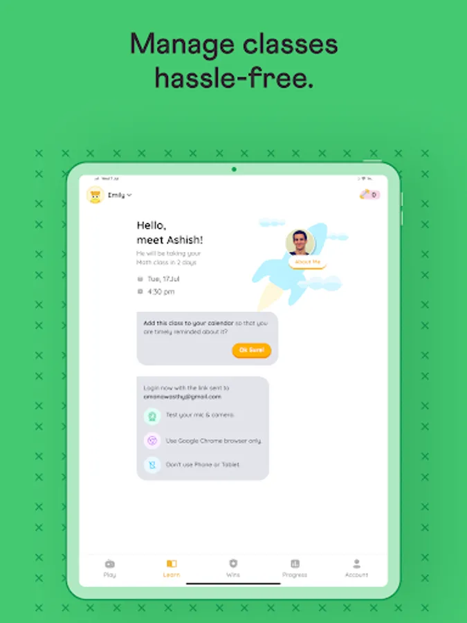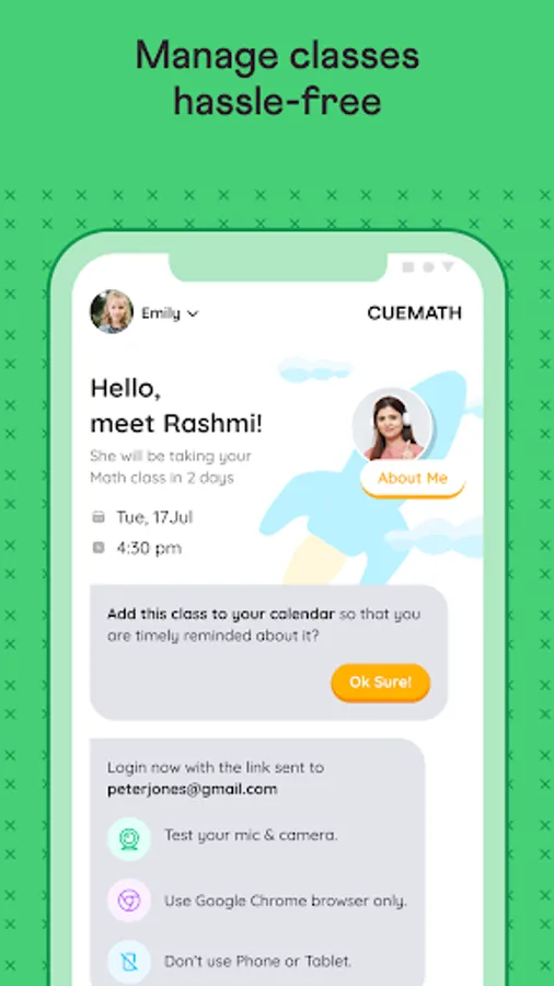 - You get a comprehensive look at the profile of the expert math tutor assigned to you while you book a free live online class through the Cuemath app.
