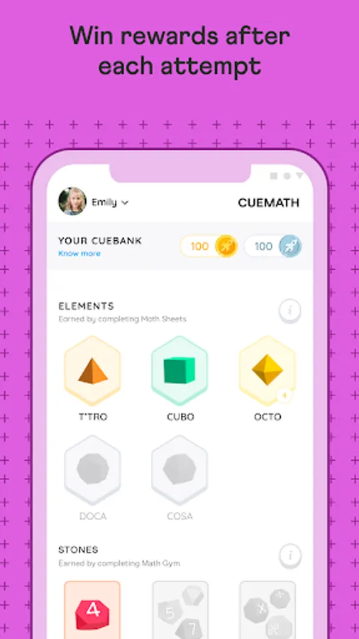 - The brain games and math games are designed to make learning interactive and fun for kids. Kids get rewarded with Cuecoins after each attempt and Math Stones after each level up.
