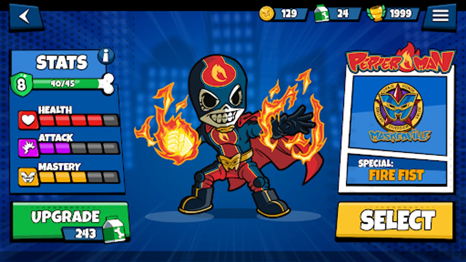 Collect cards, unlock and upgrade Crazy Town's most comical and bony superheroes and villains. Win using their powerful attacks and special abilities, such as Big Pony's Atomic Burp or Pepperman's Habanero Chili Beam.