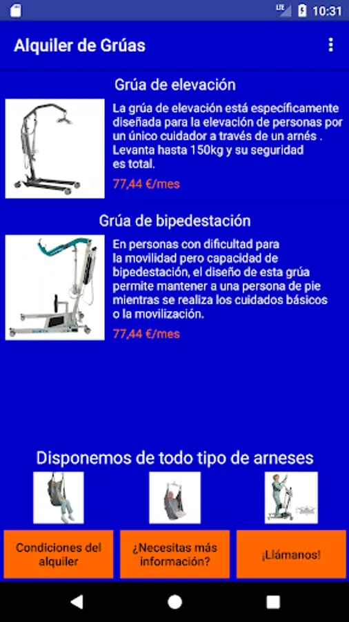 Take care is a company dedicated to the rental and sales of hospital beds and cranes to transport people with mobility problems.