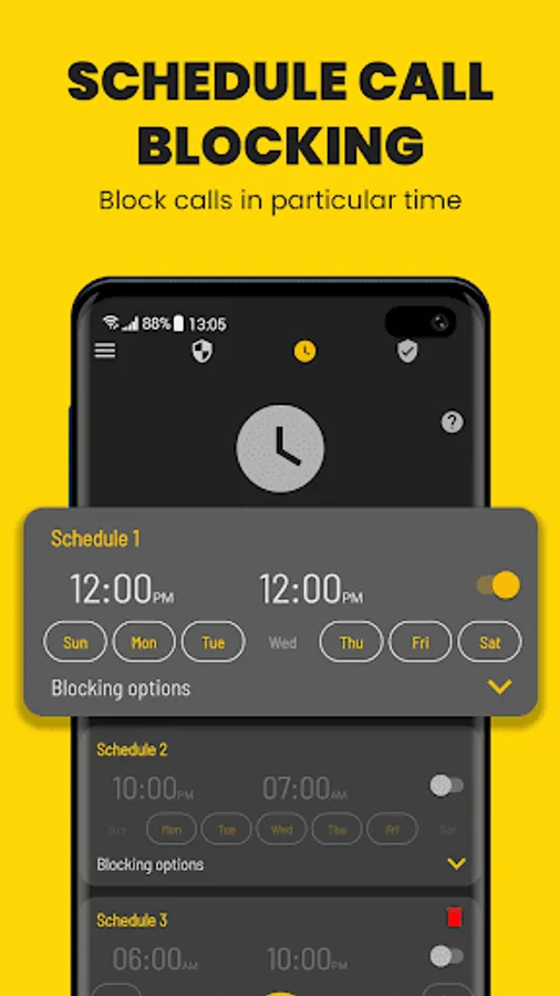 - Set up Call Blocking Schedule to block specific calls as per your daily routine. Block Incoming Calls and turn on do not disturb call blocking to avoid disturbances by unwanted calls.