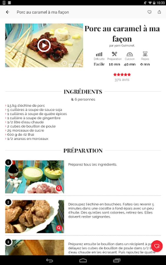 ● Add your favorite recipes to your recipe book with one click to find them easily in the application but also online.